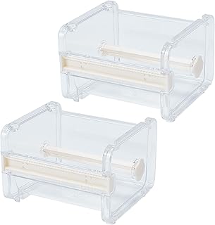 CRASPIRE 2 pièces Distributeur de Ruban Washi Cutter Rouleau Ruban Organisateur Transparent Coupe-Ruban en Plastique Washi Bande Boîte Support Blanc Stockage, 10.2x9.2x7 cm