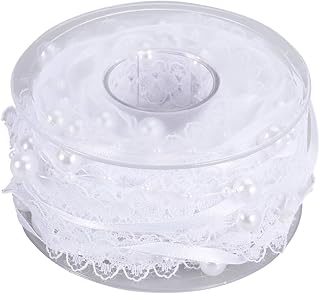 HEALLILY Ruban de Perles de Dentelle Ruban D'organza Ruban de Ruban de Satin Perle pour La Décoration D'anniversaire de Mariage Bricolage Fournitures D'artisanat (Blanc)
