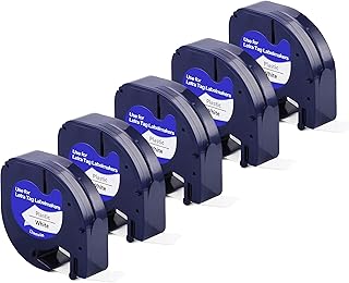 Ruban NASAG Brands pour Étiqueteuse, Compatible Dymo LetraTag, Ruban Plastique 12mm x 4m, Pack de 5 Noir sur Blanc, Recharge pour LT-100H LT-100T XR LT-110T