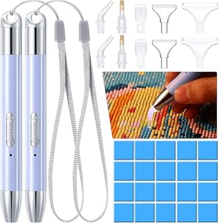 Zonon 2 Stylos de Peinture Diamant LED Stylo de Peinture 5D Stylo de Forage à Pointe Stylo Forage d'Éclairage Rechargeable USB avec 10 Têtes de Stylo et 20 Pcs Pâte à Coller (Violet)