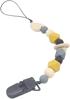 MJL Attache Sucette Bébé Attache Tétine Fille Garçon Chaîne de Sucette Avec Clip Pince Attache Sucette Pacifier Chain Clip Bois et Silicone 28cm/11.02' Noir