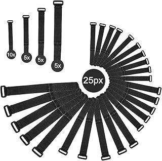 INTVN Attache Cable, Lot de 25-Noir-avec Crochet et Boucle Attache-câble en réutilisables Sangles 4 Tailles 25 pcs - Noir