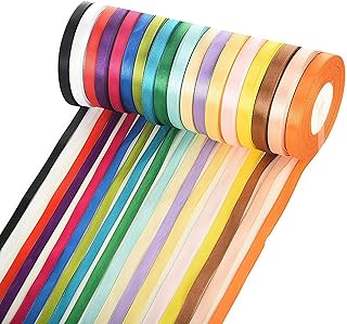 RMENOOR Lot de 20 rouleaux de ruban de soie satiné double face de 457,7 m 20 couleurs ruban satin 6 mm pour emballage cadeau, bricolage, fête et décoration de la maison