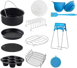 Accessoires pour friteuses à air 17Pcs, Accessoires de friteuse Convient pour Philips Ninja Innsky COSORI Princess Support de barbecue avec revêtement anti-adhésif 4-5.5L (8 pouces)