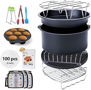 Accessoires Pour Friteuses à Air 8 Pouces Pour Friteuse à Air Gowise Phillips Cozyna Airfryer 4.5-6.5l,Accessoires De Friteuse Sans Huile Foodi à RevêTement AntiadhéSif Kit Pour Usage Domestique