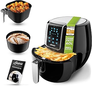 Liebfeld - Kit friteuse à air chaud [1800 W] avec panier à pain I Airfryer XXL sans graisse ni huile I Friteuse à air chaud (XXL)