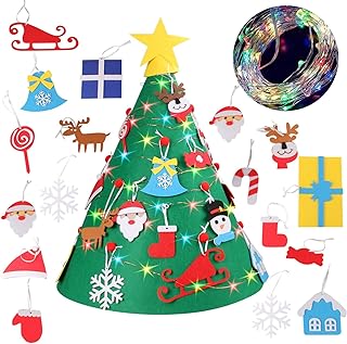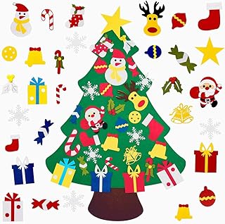 Beetest Arbre de Noël DIY pour Enfants, 3D DIY Sapin en Feutrine de Noël avec 18pcs Enfant Amical De Noël Arbre De Noël Suspendus Ornements pour Enfants Cadeaux De Noël De Noël Décorations