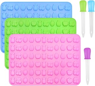 BUZIFU Moules à bonbons en silicone Lot de 4 Moules à Bonbons à Gummy & Plateaux de Glaçon en Silicone moules à Gelée moules à bonbons gommeux avec 2 Compte-Gouttes pour Faire Gelée Chocolat Muffin