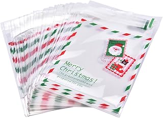 DaoRier Lot de 100 Père Noël Pochette De Bonbons Pois Sacs de Cuisson Transparent Sac d'emballage pour Stocker Les Bonbons Pains Chocolats et Gelées-Snowman-Renne-Arbre de noël (Style 3)