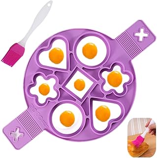 Moule à omelettes à œufs avec 7 trous 4 formes, silicone antiadhésif, cœur, fleurs, cercle et crêpes carrées, créer plus de plaisir pour casserole, poêle, micro-ondes, et brosse à badigeonner