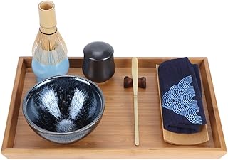 Tiamu Service à thé matcha japonais, cérémonie matcha japonais, fouet matcha en bambou, fouet à matcha (Chasen), cuillère traditionnelle (Chashaku), cuillère à thé, support pour fouet