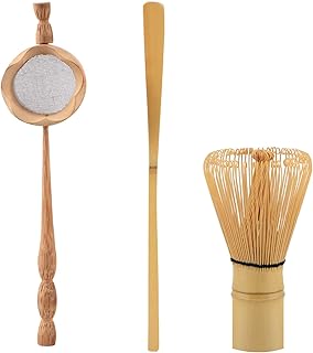 Summerwindy Passoire à Thé en Bambou Naturel Pinceau Fouet Matcha Ensemble de Pelle à Fouet en Poudre avec Thé Vert Ensemble D'Ustensiles à Thé Accessoires de Cuisine 3 Pièces