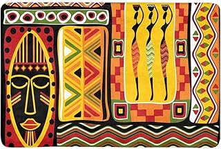 LVOE TTL Art Africain de Femme avec Pot d'éléments historiques Orange paillasson antidérapant intérieur et extérieur Tapis Porte Tapis Tapis de Plancher de Tapis, 23,6 x 15,8 Pouces