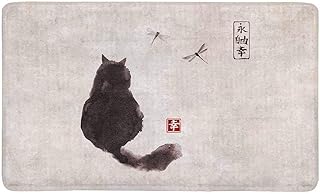 Kanaite Vintage Chat Moelleux et Libellule Encre Japonaise Traditionnelle Peinture Paillasson Antidérapant Tapis D'entrée Tapis De Sol Intérieur/Extérieur Porte Tapis Décor À La Maison, Support en C