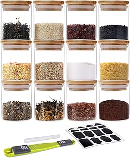 GoMaihe 150ML Petit Bocaux Conservation Verre, Hermétique Bocal en Verre avec Couvercle en Bambou et Rondelle en Silicone Pot en Verre à Haute Teneur en Borosilicate, Lot de 12