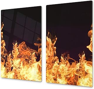 Concept Crystal Planche à découper en Verre trempé et Couvre-cuisinière – Résistant à la Chaleur et aux bactéries – Une PIÈCE (60x52 cm) ou Deux PIÈCES (30x52 cm chacune); D03 Série Feu: Feu 5