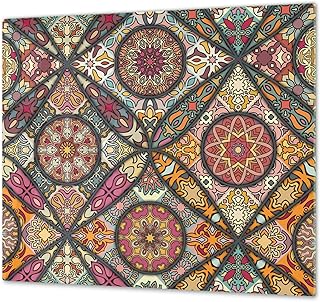 Planche à découper en verre trempé – Couvre-cuisinière et protège-plain de travail en verre résistant – UNE PIÈCE (60x52 cm) ou DEUX PIÈCES (30x52 cm chacune); D14 Patrons et Mandalas: Tiles 5