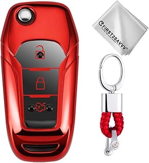 Happyit Coquille de Fibre de Carbone ABS + Silicone Clef de Voiture Couverture Cas Porte-clés pour Ford Focus Mondeo Edge Fiesta Kuga Mondeo MK4 Fusion Escort Ecosport (A ibre de Carbone + Rouge)