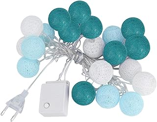 【Cadeau de Noël】Boquite Guirlande Lumineuse, Guirlande LED, 20 Boules de Fil de Coton Guirlande Lumineuse LED Guirlande de Nuit intérieure pour Chambre à Coucher avec Cour intérieure et Jardin(Bleu Cl