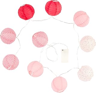 Cmp - Guirlande 10 boules LED à piles, Longueur 1m92, Coloris Nuances de Rose et Doré pailleté, Piles NON INCLUSES