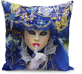 Fabulous Housse de Coussin 40x40 cm Carnaval de Venise Masque Blanc Costume Bleu