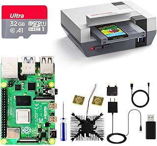 RETROFLAG Raspberry Pi 4 Modèle B 4 Go Starter Kit avec Boîtier SSD, NESPi 4 Boîtier avec 32 Go Carte MicroSD, Ventilateurs, Dissipateur, Alimentation, Câble Micro HDMI vers HDMI pour Raspberry Pi 4