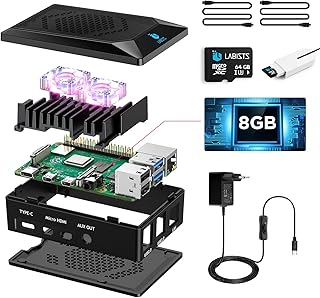 LABISTS Raspberry Pi 4 8Go, Raspberry Pi 4 Modèle B 8 Go Kit avec 64 Go Carte Micro SD Classe 10, Premium Boîtier Noir, Dissipateur Module en Métal, 2 Ventilateurs, 5,1V 3A Alimentation Interrupteur