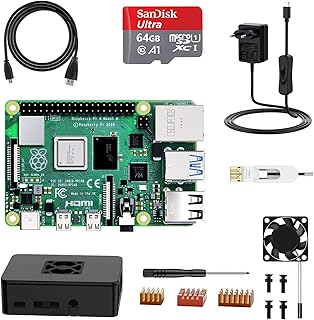 NinkBox Raspberry Pi 4 Modèle B, 4G RAM+64G Micro SD Carte, Starter Kit: Alimentation de 5V/3A avec Interrupteur, Ventilateur, Boîtier Noir, Dissipateur, Câble Micro HDMI. Raspberry Pi 3 b+ Amélioré