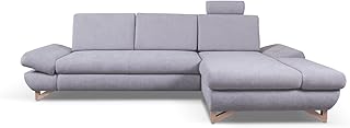HOMIFAB Canapé d'angle scandinave Convertible en Tissu Gris avec Couchage 110x210cm - Collection Mathis