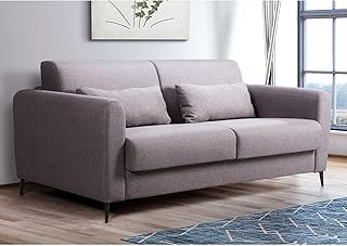 HOMIFAB Canapé 3 Places Convertible en Tissu Gris Clair Boston - Ouverture Express - Couchage Quotidien 2 Personnes - Matelas HD