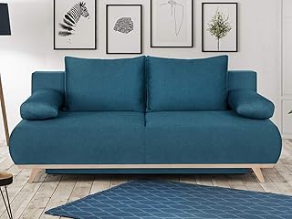 HOMIFAB Canapé scandinave 3 Places Convertible en Tissu Bleu avec Couchage 113x190cm - Collection Theo