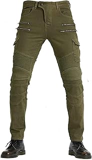 Pantalon Moto Pour Hommes, Pantalon Cross Racing Avec 4 Protections Amovibles, Pantalon Anti-chute (Armée verte,M =33.9' waist)