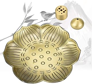 JustYit 2 Pièces Porte Encens de Lotus Porte-Encens en laiton avec Récupérateur de Cendres avec 5 Trous Bronze pour Décoration Pour Maison Salle Bureau Club Yoga