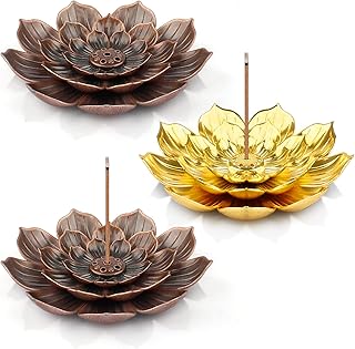 BUZIFU 3 Pcs Porte Encens Lotus en Alliage de Zinc Brûleur d’Encens Oriental Vintage Porte Encens Vertical Support Encens avec Capteur de Cendres pour Bâtons d'encens Maison Bureau Club Yoga Déco