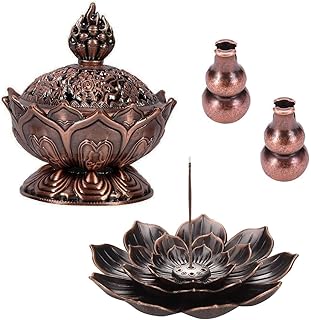 Xiuyer Brûleur D'encens Forme Lotus Alliage Zinc+Porte-encens Forme Lotus Vintage+2pcs Mini Encens Inséré Brûleur D'encens Gourdes